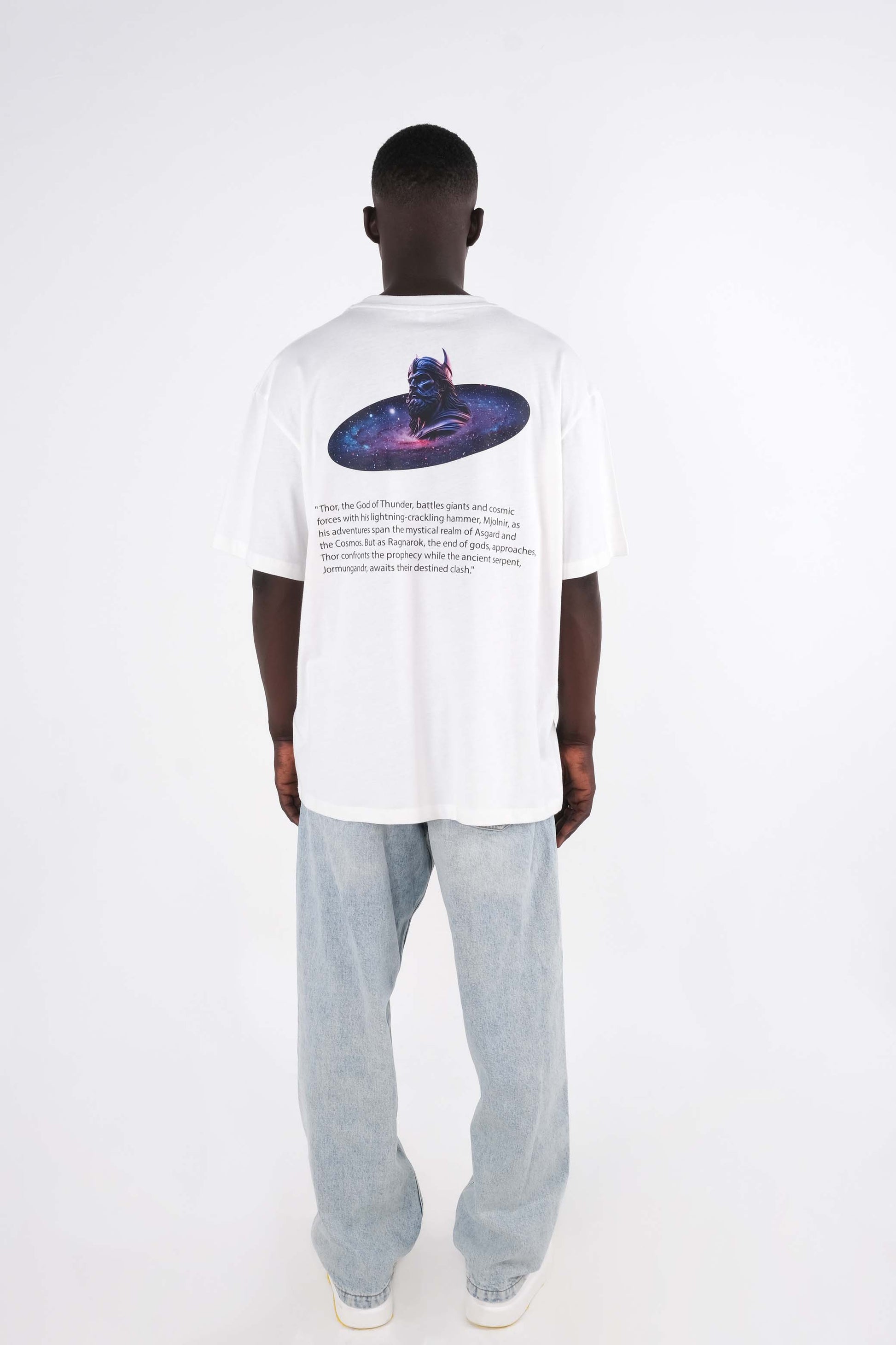 Thor'un yıldırımlar çakan çekici Mjolnir ile dokuz diyara hükmeden gücü, bu t-shirt’te vücut buluyor. Thor Galaxy Oversize T-Shirt, mitolojik köklerden gelen kudreti ve galaksinin koruyucusunu simgeler. %100 pamuktan üretilen bu premium t-shirt, üstün bir konfor ve dayanıklılık sunarken, zamansız bir stilin temsilcisidir.