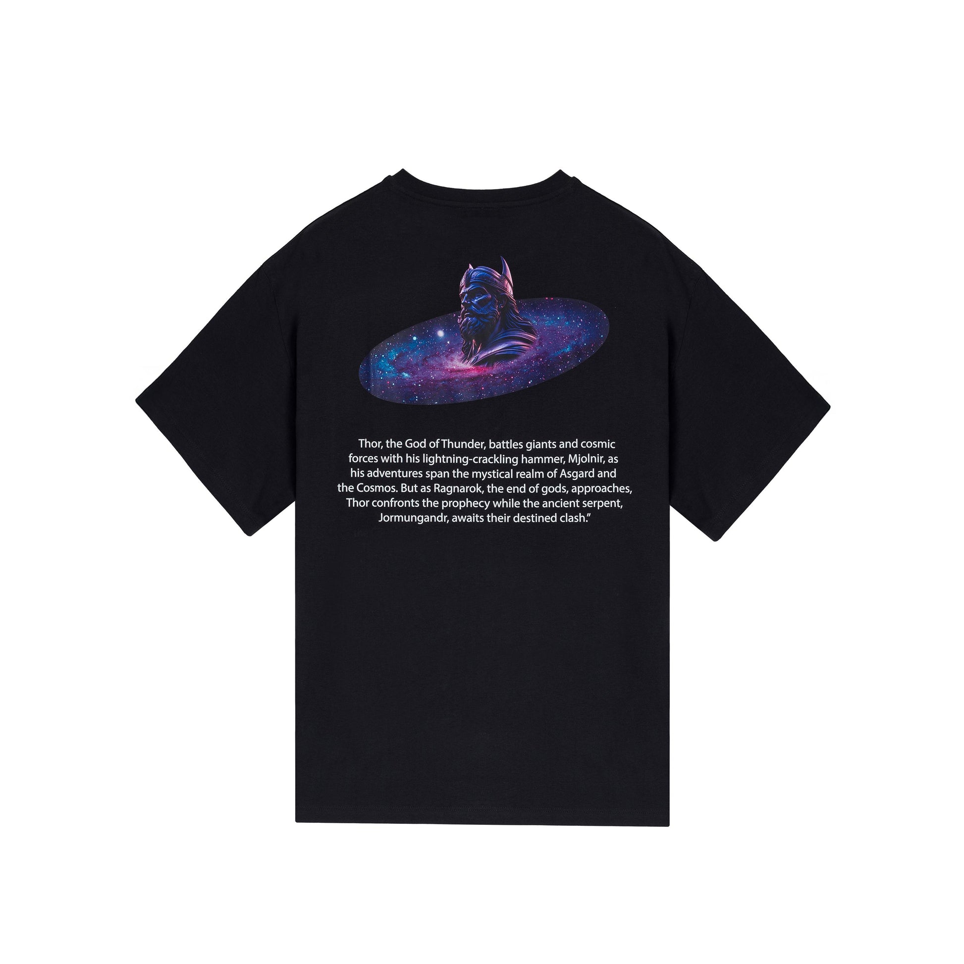 Thor'un yıldırımlar çakan çekici Mjolnir ile dokuz diyara hükmeden gücü, bu t-shirt’te vücut buluyor. Thor Nine Realms Oversize T-Shirt, mitolojik köklerden gelen kudreti ve galaksinin koruyucusunu simgeler. %100 pamuktan üretilen bu premium t-shirt, üstün bir konfor ve dayanıklılık sunarken, zamansız bir stilin temsilcisidir.