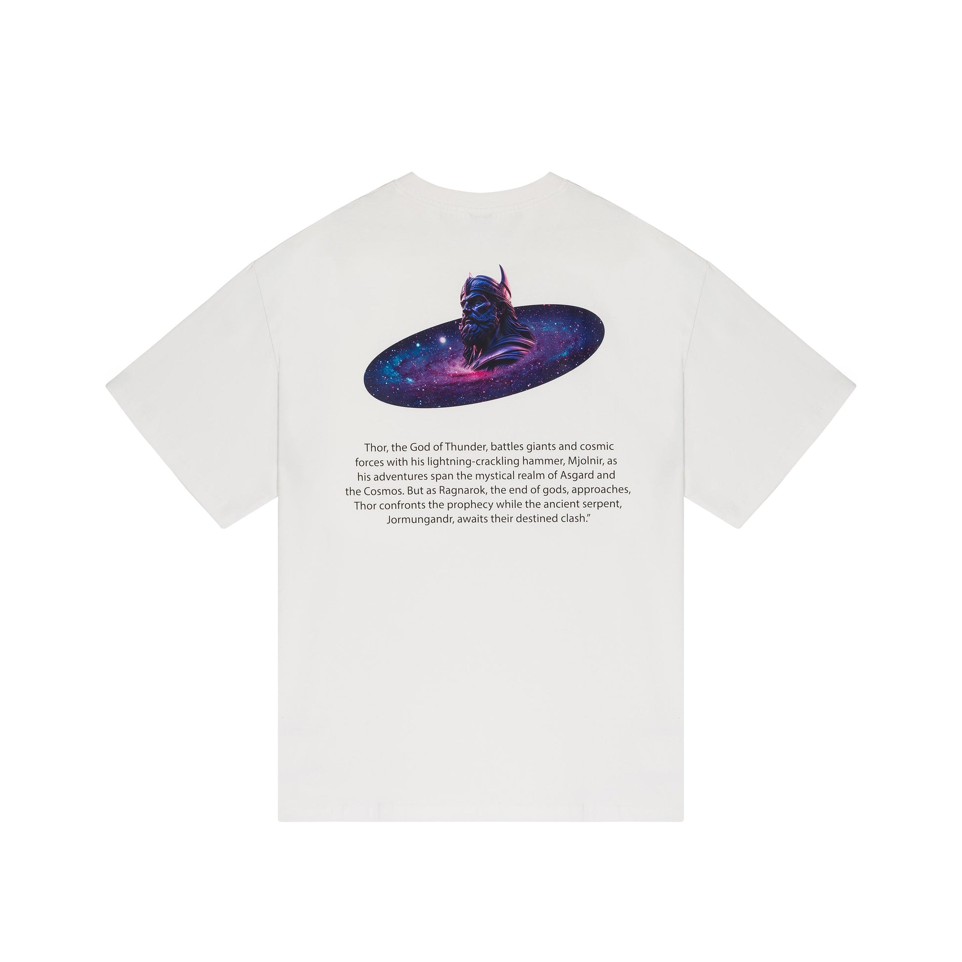 Thor'un yıldırımlar çakan çekici Mjolnir ile dokuz diyara hükmeden gücü, bu t-shirt’te vücut buluyor. Thor Galaxy Oversize T-Shirt, mitolojik köklerden gelen kudreti ve galaksinin koruyucusunu simgeler. %100 pamuktan üretilen bu premium t-shirt, üstün bir konfor ve dayanıklılık sunarken, zamansız bir stilin temsilcisidir.